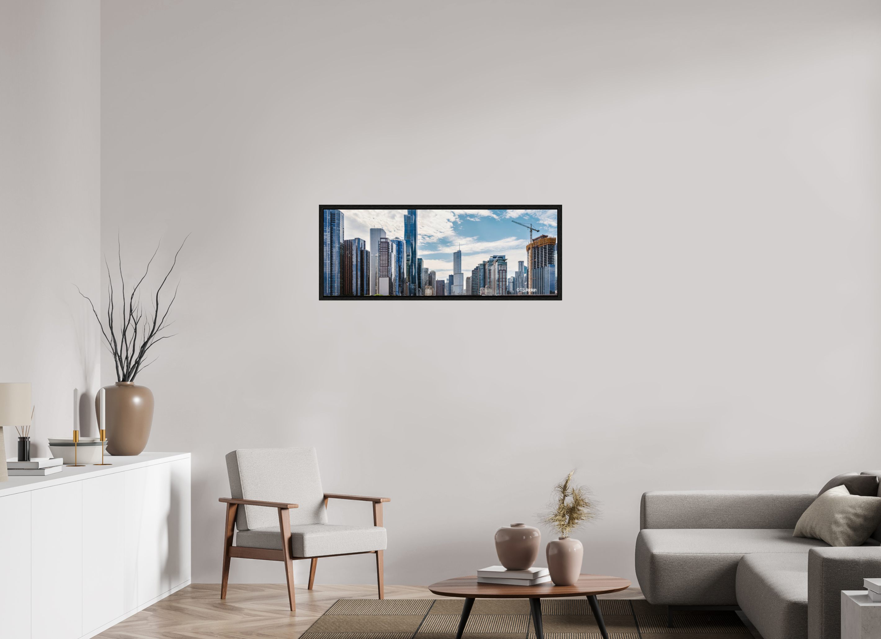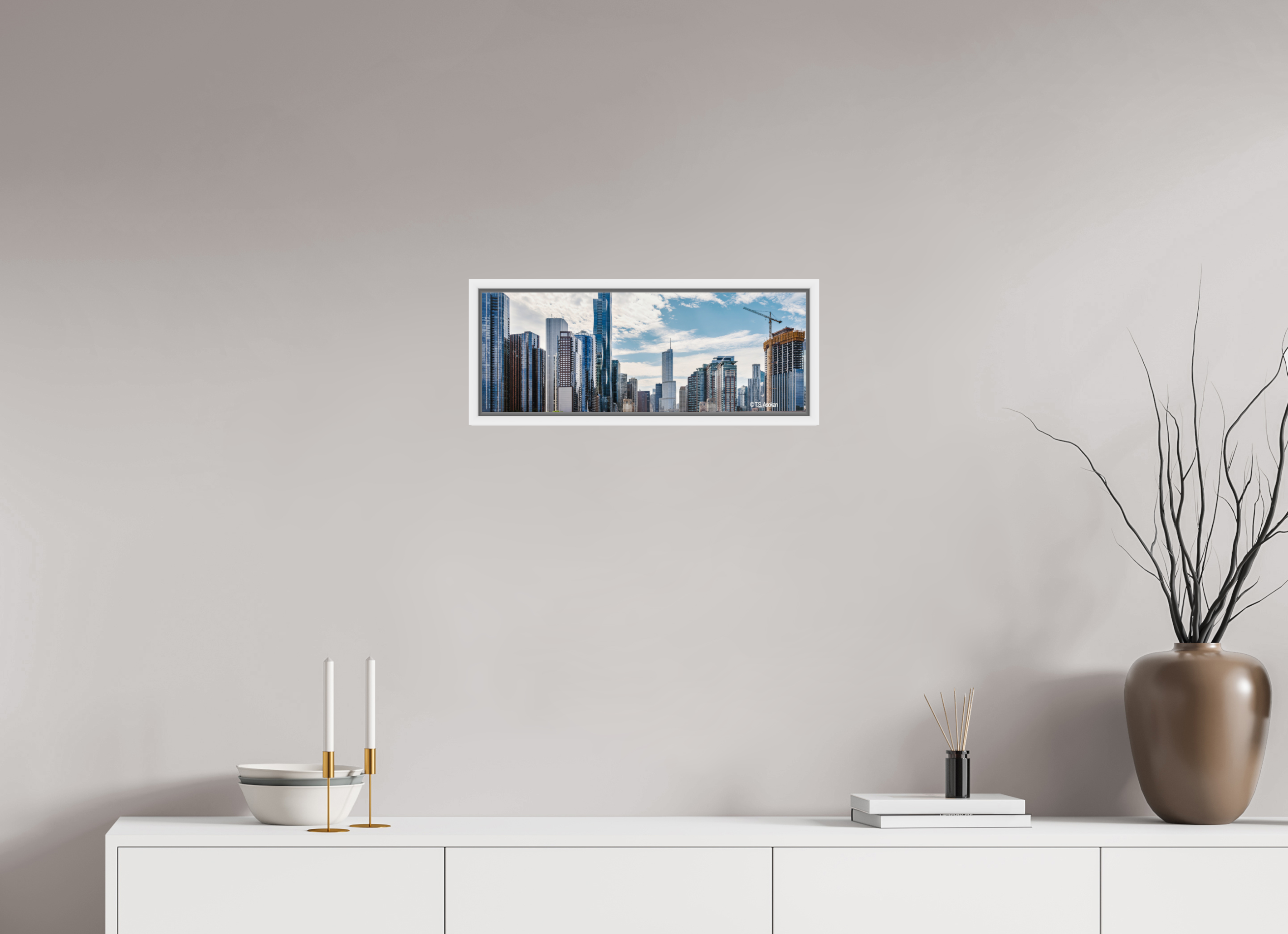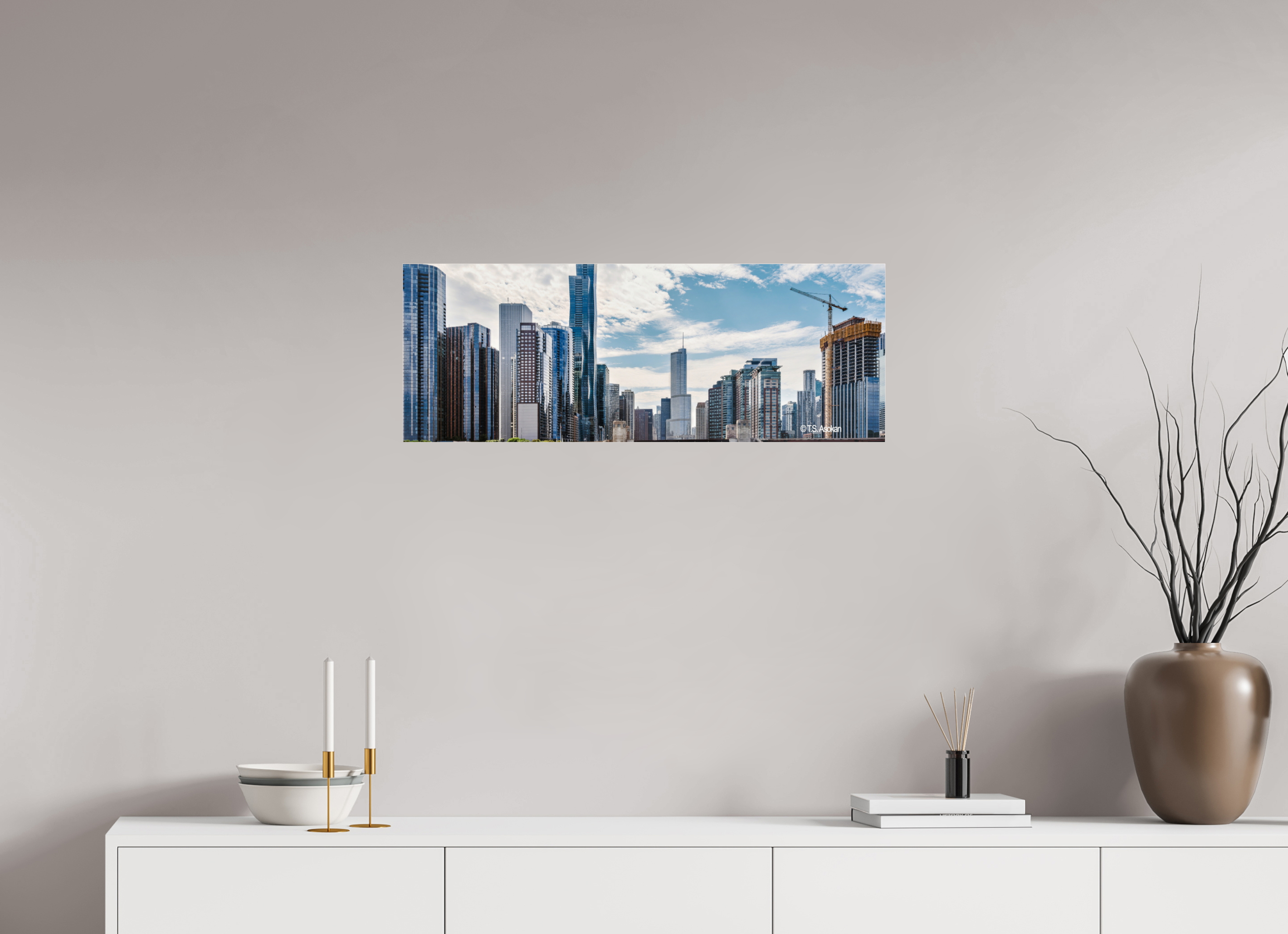 A crystalline sweep of the East Loop skyline: the three-stack St. Regis Chicago (formerly Vista Tower) rises in rippling glass beside the spire of Trump International Hotel & Tower—all under a luminous Midwestern sky. This panoramic skyline centers two of Chicago’s modern landmarks. To the left, the 101-story St. Regis Chicago steps upward in a trio of frustums—interlocking, tapering forms that catch the light in shifting blues and silver. Completed in 2020, it stands as Chicago’s third-tallest building and the tallest in the world designed by a female architect (Jeanne Gang, Studio Gang). Near the middle, the sleek silhouette of Trump International Hotel & Tower—Chicago’s second-tallest—rises from the former site of the Chicago Sun-Times. Layered glass towers, a working construction crane at right, and a field of bright clouds complete a view that feels both precise and dynamic. Printed in ultra-high resolution for wall-size display; available on acrylic, HD metal, or canvas, and as a dramatic triptych or multi-panel cluster. Highlights: St. Regis Chicago (2020) — 101 stories, three interlocking frustums Tallest building worldwide designed by a woman (Jeanne Gang) Trump International Hotel & Tower — Chicago’s second-tallest; former Sun-Times site Expansive cloud field, layered glass façades, active skyline with crane Produced on acrylic, HD metal, or canvas; triptych/cluster options
